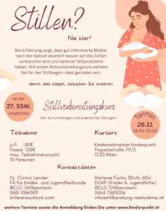 Am 26.11.2025 findet wieder unser beliebter Stillvorbereitungskurs für alle werdenden Mamas statt (empfohlen ab der 27. SSW).